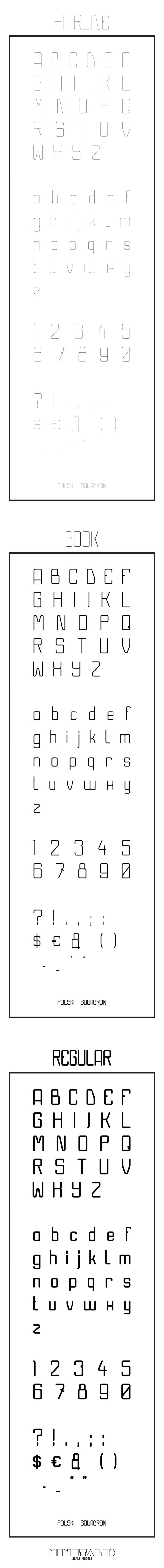 The Polski Squadron font is the result of a request to create and produce a working ‘hairline’ font on a tight schedule of 3 weeks. The inspiration for this project was taken from the ID numbers found on the Polish (and to a lesser extend Soviet) aircraft.