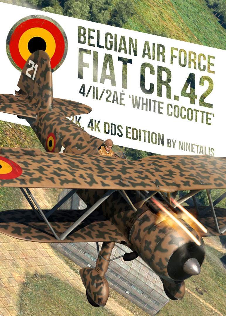 Here is a skin that has a special place for me, a Belgian Air Force Fiat CR.42. Special because it was one of the dozen subjects I researched for my Master project in 2017, a book called ‘Clean the skies!’, focusing on the losses the Belgian Air Force suffered during the invasion of the German Armed forces into Belgium in 1940. Now you can play your Fiat CR.42 in Belgian markings in the game as you defend the homeland from the vicious neighbors.