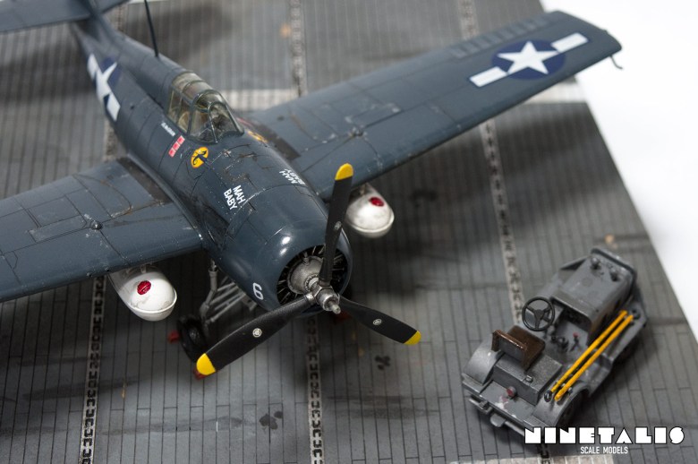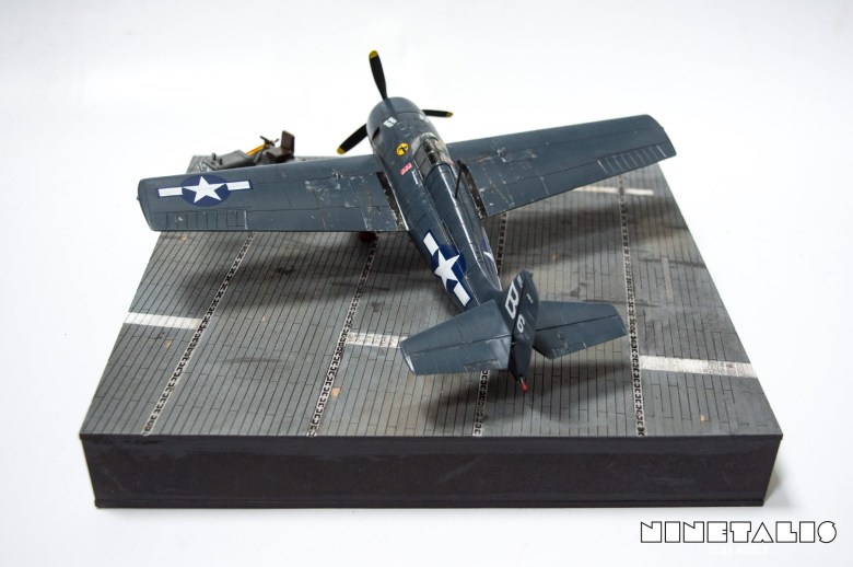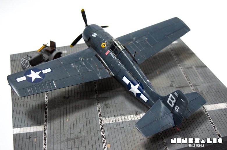 The aircraft build here was part of VC10 stationed on board of USS Gambier Bay (CVE73) during October 1944. Although rare for carrier-based machinery, this aircraft was assigned to lieutenant Bruce A. McGraw who had been awarded the Distinguished Flying Cross for actions over the Bonin Islands on the 31st August 1944 earlier that year. It should also be noted that the kit suggests that the aircraft was overal blue sporting the late war US Navy insignia. However I found several images of the aircraft in question (and other FM-2’s) which show that it used the ‘mid-war’ insignia type with the dark border surrounding the star and bars. Again this is easily fixable as you can use the insignia decals for the Atlantic paint scheme which are also included with the kit, as such you are free to use the one that is closest to your liking.