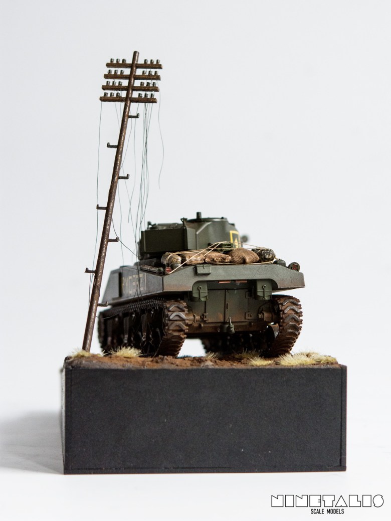 The diorama was created with the usual materials with additional citadel grass tuffs and an electricity pole that came from the spares box. The ground colours were created with a mix of modelling and spare paints and powder pigments from the local arts and crafts store.