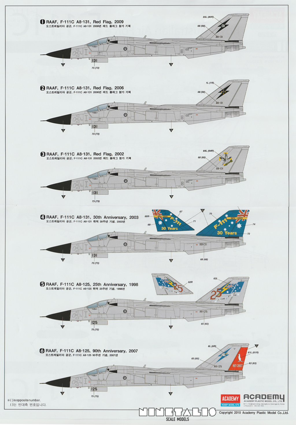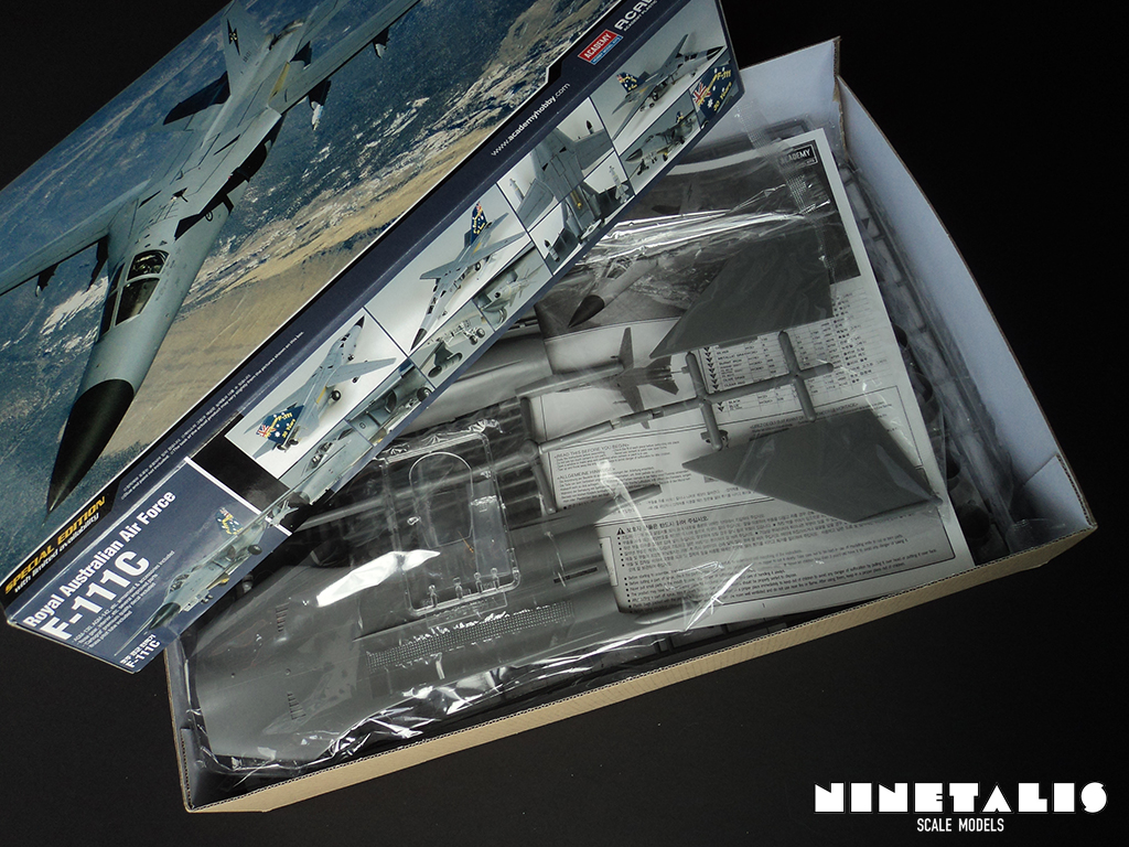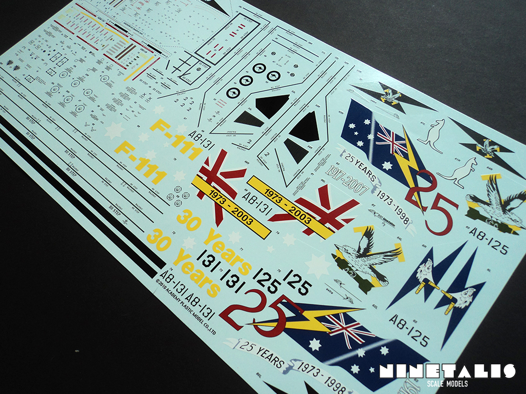 But not only the parts are present in large numbers, The decal sheet is also rather large, with options for six different markings! (which is something we’re more used from companies like Eduard). It should not be surprising that these are all markings for Royal Australian Air Force Aardvarks, since this kit is supposed to build up a F-111C.