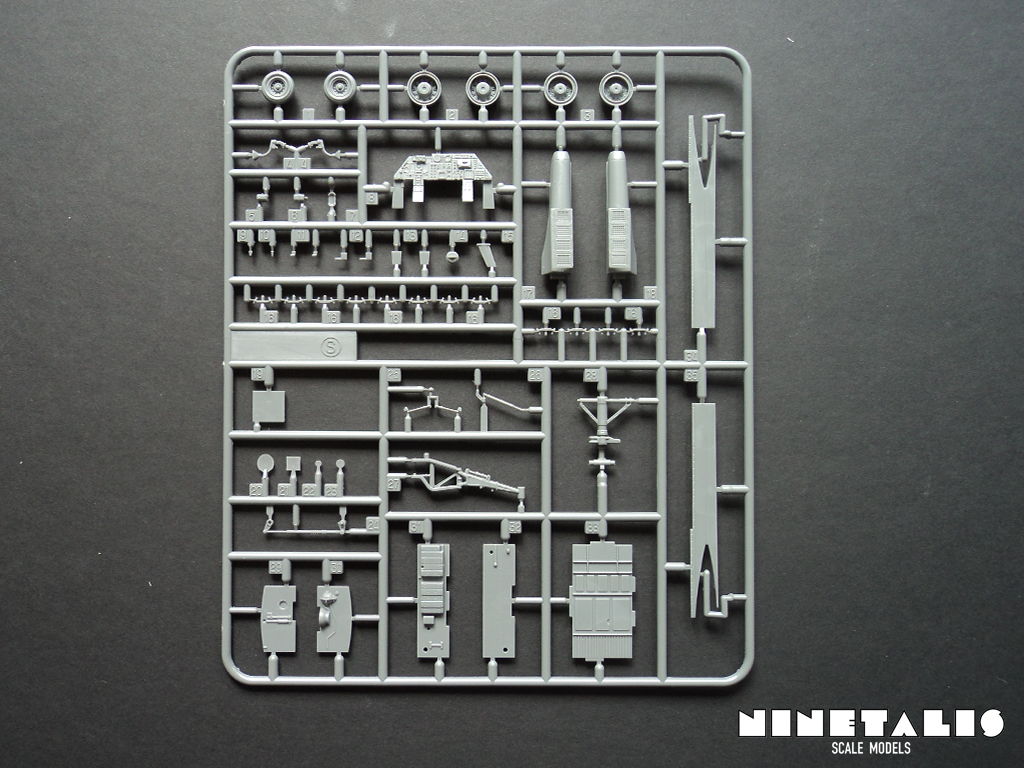 The last of the unnamed sprues holds various parts, like the cockpit, half of the tires and some of the parts that are needed to recreate the F-111’s swing wing capabilities. The instrument panel is depicted by using raised panel lines. Now, some of you might already think that this needs to be replaced, do not worry. This is where the updated parts come in, which you will be able to see on the S sprue.