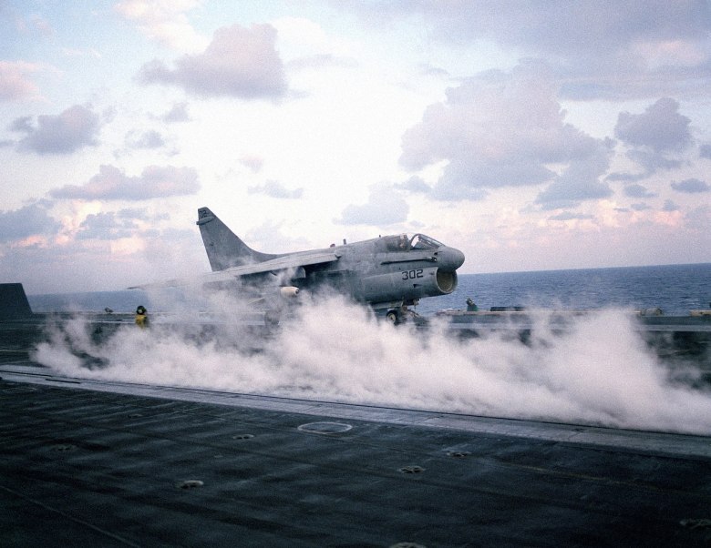 In 1962 the United States Navy began the search for an aircraft to replace their fleet of Douglas A-4 Skyhawks with aircraft that held a greater payload and range, with a special emphasis on accurate delivery of armament which would reduce the costs per target. For this a competition was launched where it was required to work on already existing airframes, also to reduce costs. Vought proposed a design based on their F-8 Crusader fighter featuring a similar configuration, but was shorter in length and with a stubbier nose. They dubbed it as the Ling-Temco-Vought A-7 ‘Corsair II’. Once put in production, it featured a head-up display (HUD) and an inertial navigation system (INS).