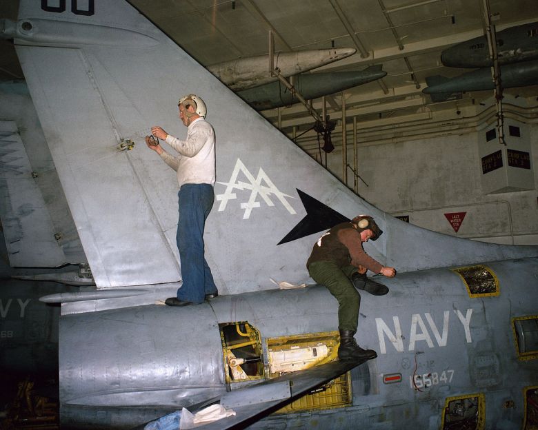 During my search for pictures of the aircraft found in the kit I stumbled upon dozens of interesting pictures showing the various stages of weathering found on these monotone A-7E aircraft. While Navy aircraft are generally well cared for, US NAVY from this era tend to range from sqeaky clean to extremely dirty. It also shows all different kinds of armament carried underneath the wings by A-7E’s of that era.