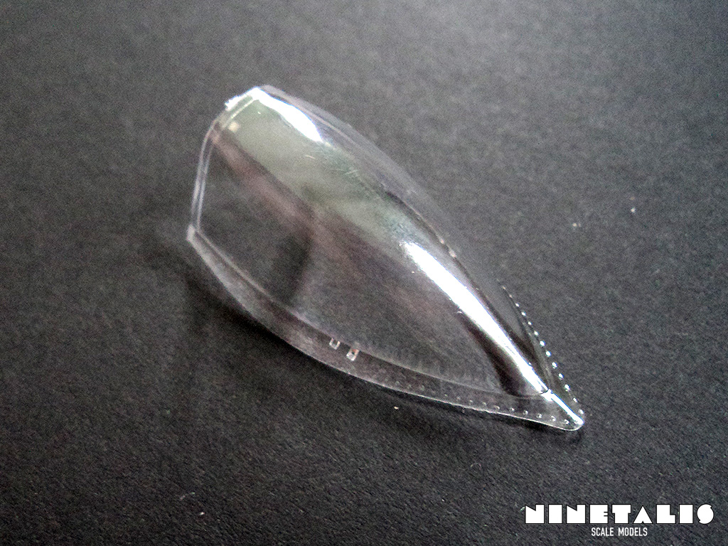 The clear sprue holds 9 parts in total, being the canopy framing and navigation lights. Again, as far as detail goes on clear parts, it is pretty nice here, with the framing being slightly raised as oppose to recessed rivets on the sliding canopy part.
