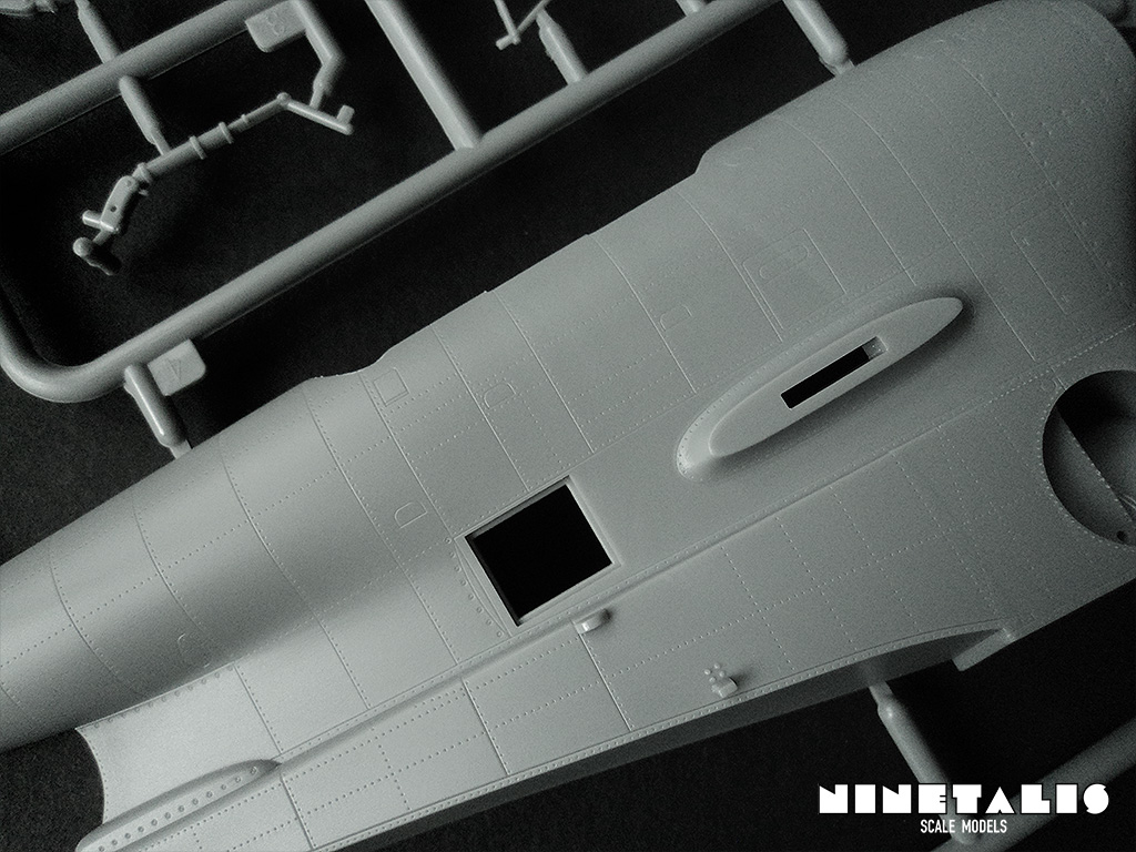 Although the cockpit parts aren’t horrible or anything, I must say they are a little bit disappointing, as the detail could have been better and is more suggestive and rounded than sharp and realistically eyeing. Again, it is not a drama but accuracy die-hards will probably want to address this issue, and a minimum of tiny scratch build details (or spare box parts) will go a long way. One thing that should be mentioned is the lack of the dorsal machine gun and gunner seat, which is inexplicably missing from the kit.