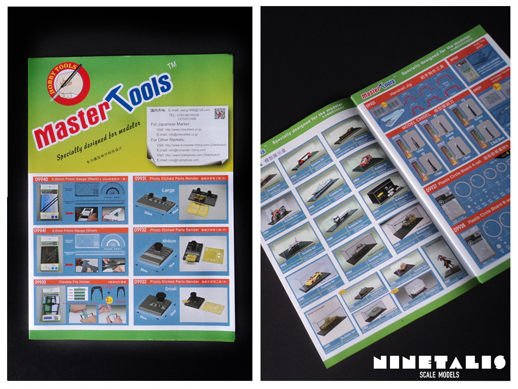The printed materials remind a lot of the Trumpeter and Hobby Boss kits. As such we get a horizontal A4 size leaflet for the instructions and a vertical colour printed sheet with the provided markings. There is also the decal sheet and a catalogue of Master tools products.
