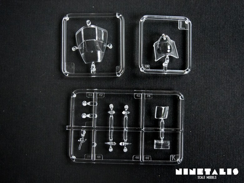 On frame K we are able to find all the other parts like the navigation light and landing light housing. The navigation lights are molded in one solid piece, enabling it to be adjusted in my own preferred way of creating navigation lights.