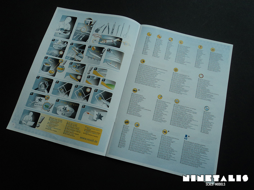 Although this isn’t the first kit with the new instructions leaflet, it is personally the first time that I see it in person. It is obviously an improvement over the instruction sheets we are used to getting from Revell. Now as they are no longer in black and white and printed in full colour, I’m sure many people will embrace this new redesign of the instruction sheets with open arms. Especially when it comes to the markings.