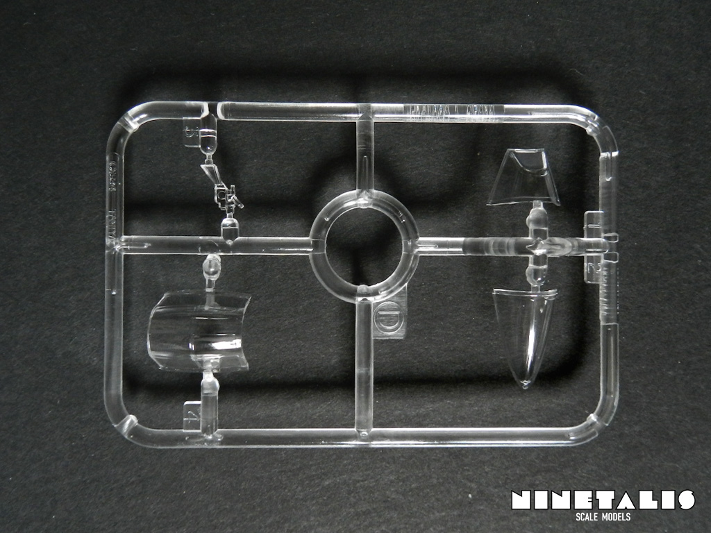 The clear sprue only features four parts, three of which are from the canopy framing. The fourth part is the gunsight, which is one of the seven parts needed to build the cockpit. The parts that are supposed to be painted are a bit higher than the parts that are meant to be clear, which comes in handy during the masking and painting process.