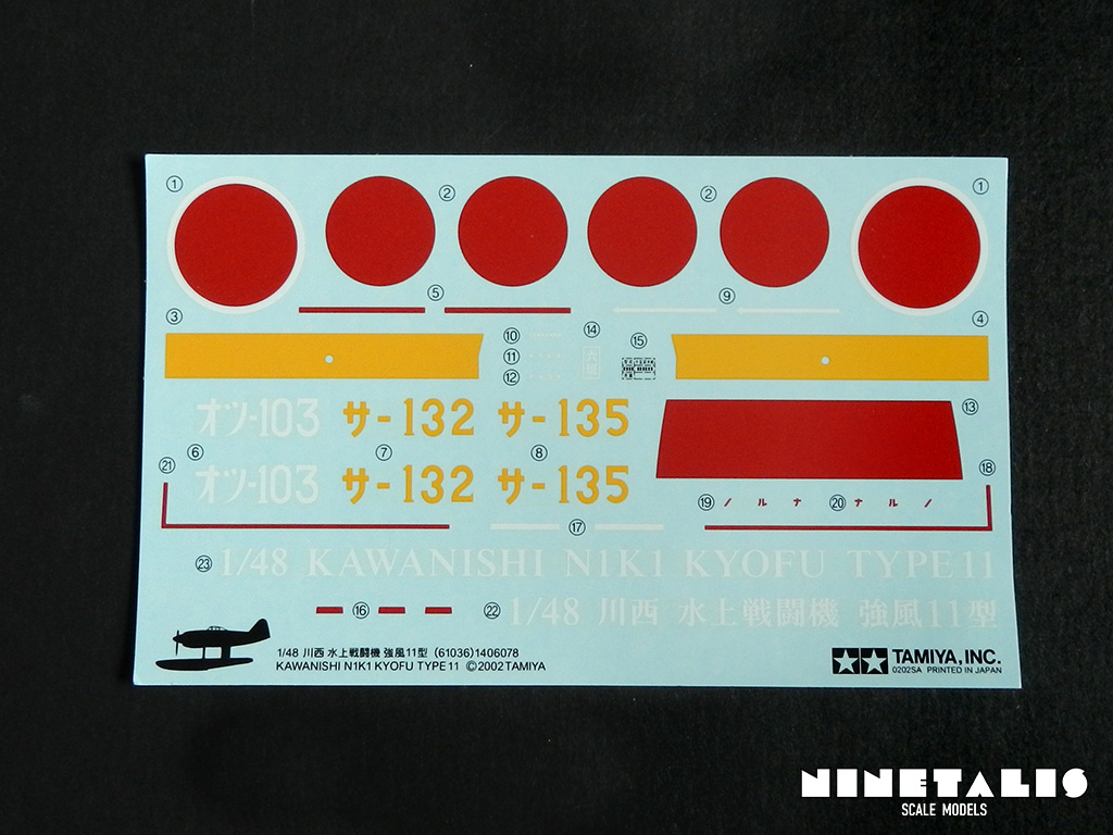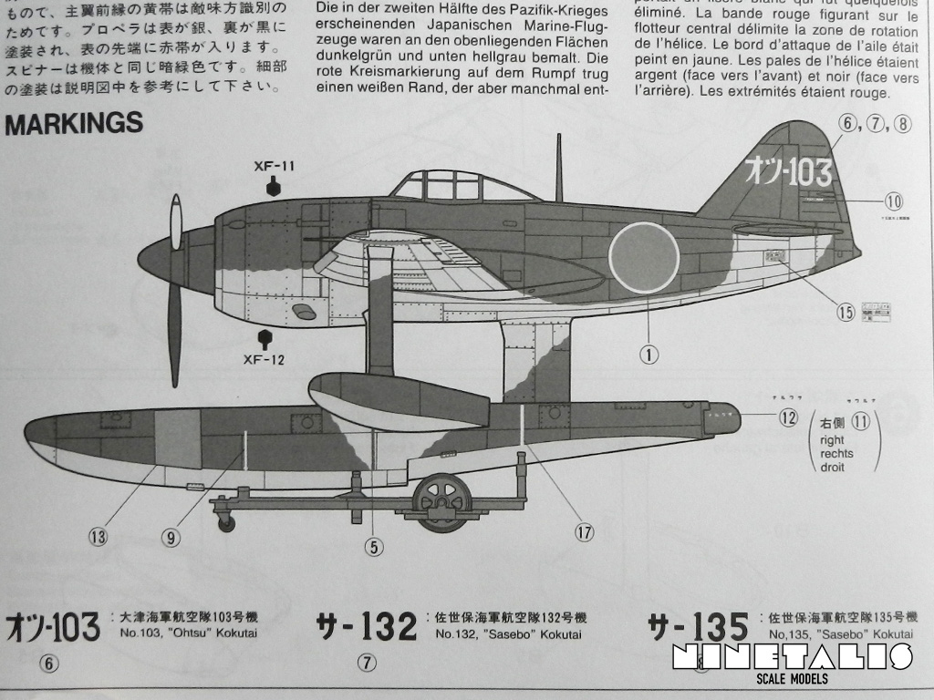 As said before with the decals, there are three markings provided for three different airframes. But aside the difference of identification codes, there are no differences with the paint schemes, which are painted IJN gray on the lower areas and IJN green on the upper surfaces. This is not a surprise considering all these aircraft were painted the same, aside from a few orange prototypes.