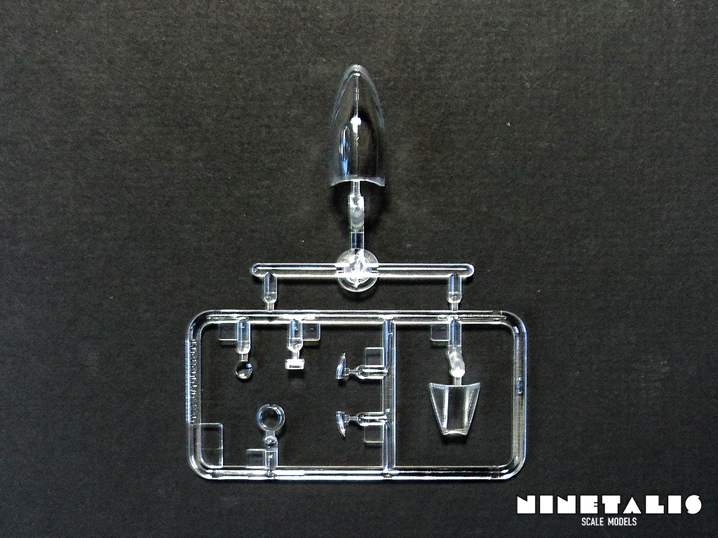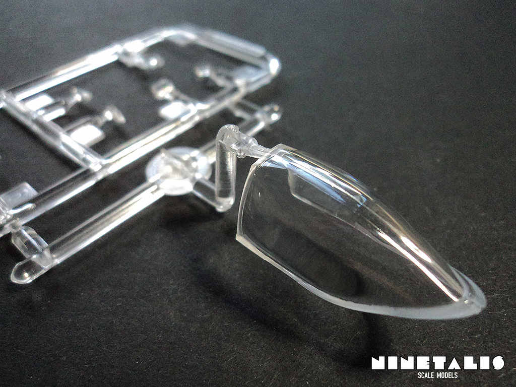 In total we get 7 clear parts, but we don’t need to use them all. One of the parts represents a window for the instalment of a recon camera. The parts are very clear and show no damage, but do need some sanding here and there on the borders (aka the places you will need to paint anyway). One thing that does prove troublesome is that the sliding canopy part has a seam line smack in the middle of it, which one will have to deal with.