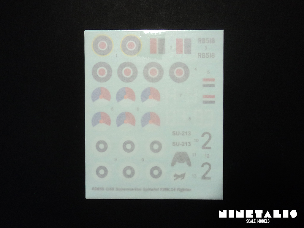 We are provided with a decal sheet containing 32 decals, which consists of national insignia’s and ID numbers. No stencils are included because (judging from photographic evidence) Spiteful airframes did not have many stencils, although a few did have some (as can be seen on the pictures attached to this review). There is a decal for the instrument panel printed in black and white colors, which eyes a bit unrealistic.