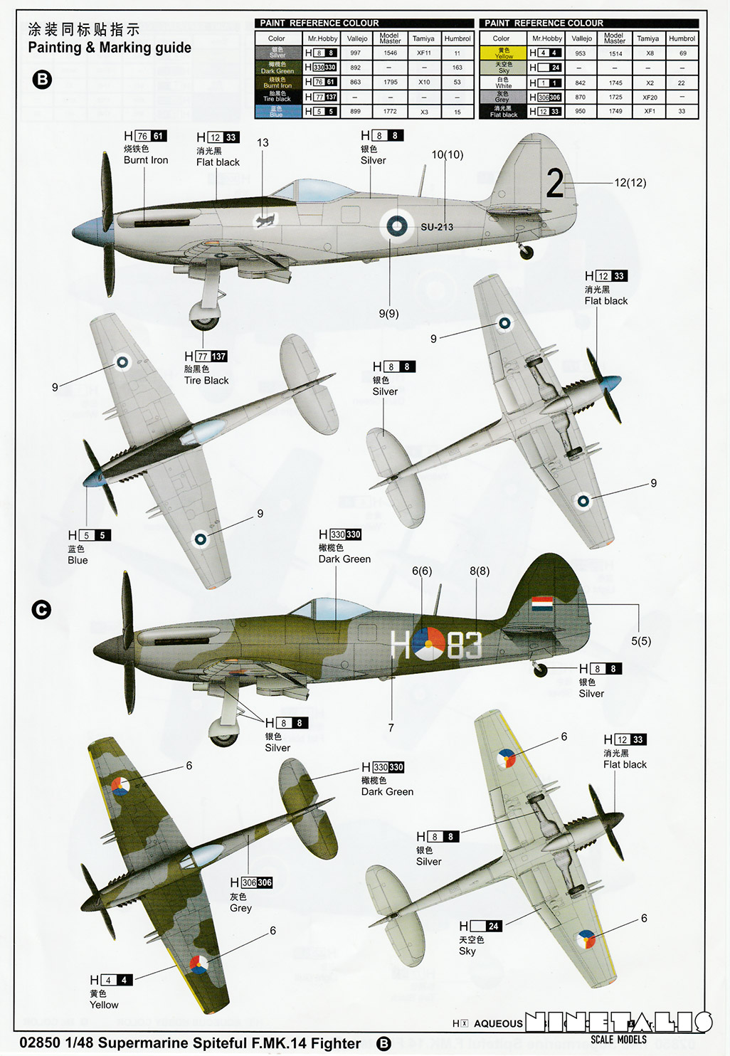 The manufacturer addressed the issue of the few markings by adding several what-if schemes of a Dutch and Finnish airframe, which is nice addition if you are into that. However, the connection to Netherland and especially Finland is quite odd. The Dutch did fly a good number of Spitfires after the war but did not show interest in the Spiteful.