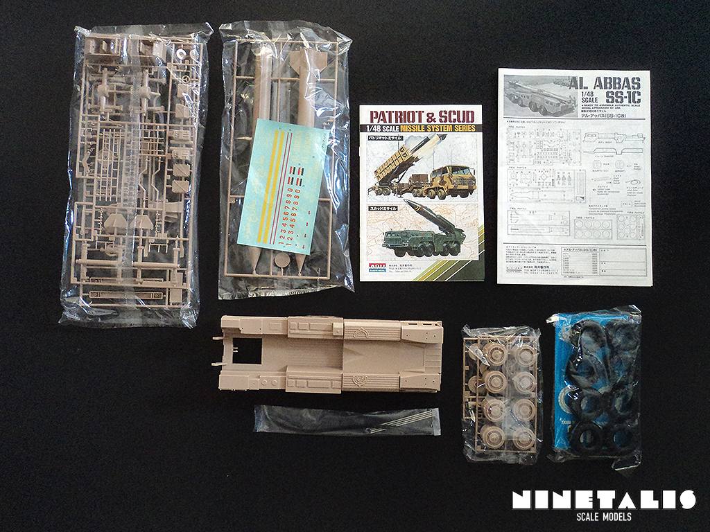 Somewhere in the process however, there must have been a small mix-up between the ranges and weight of the various missiles, as the leaflet states a range of 270km and a weight of 6,370kg for our Scud-B. This is the case with R-11 (Scud-A), but the leaflet clearly states to be providing info about the R-17 missile, which most sources claim to have a range of 300km and a weight of 5,800kg. Yet it must be said that most of the other info seems to be largely correct. Also included is info on the american patriot missile systems, which can also be found in the ARII kit line-up in 1/48 scale.