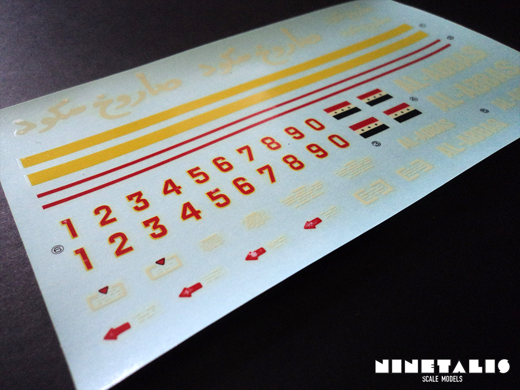 The decals are not really impressive. One look at it already tells you a lot. The clear border of the decals are really big and will definitely need to be cleaned up. The white has turned ‘yellowish’ and the underlying paint will probably be visible, although one can’t be sure of that until it has been tested. Another thing is the stencils. They are just white bars, not actual downsized text. This is definitely not because the text would be to small to print. Pretty much on the contrary, the text would be so big that it would stand out on the finished model that these are just bars and not actual text. A question I also have is why there are red numbers on the sheet, as the only missile launchers I have seen so far sport white numbers or even more often have nothing at all. None ever wear these red numbers as far that I can tell. In my opinion this could really use a small update and so a raid on your spare box will definitely be required.