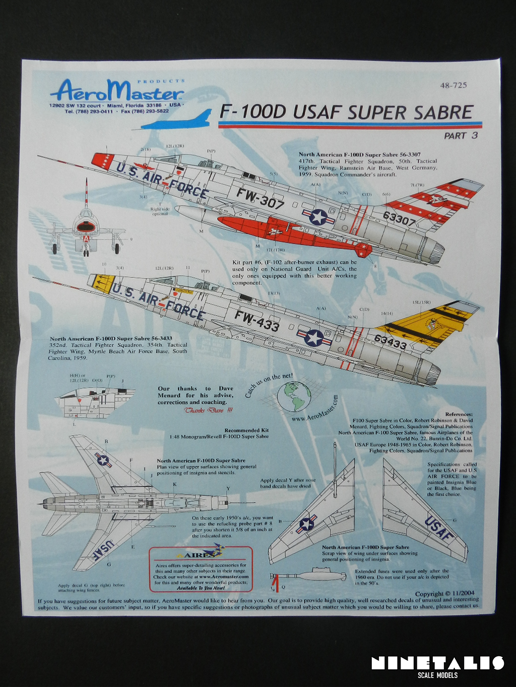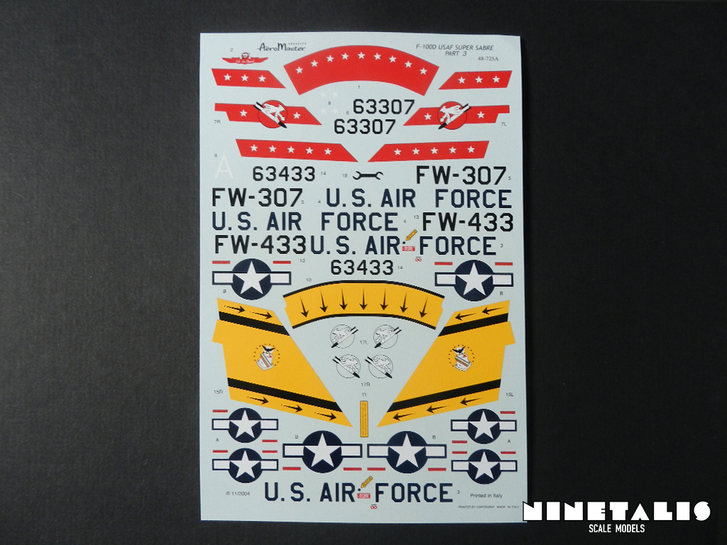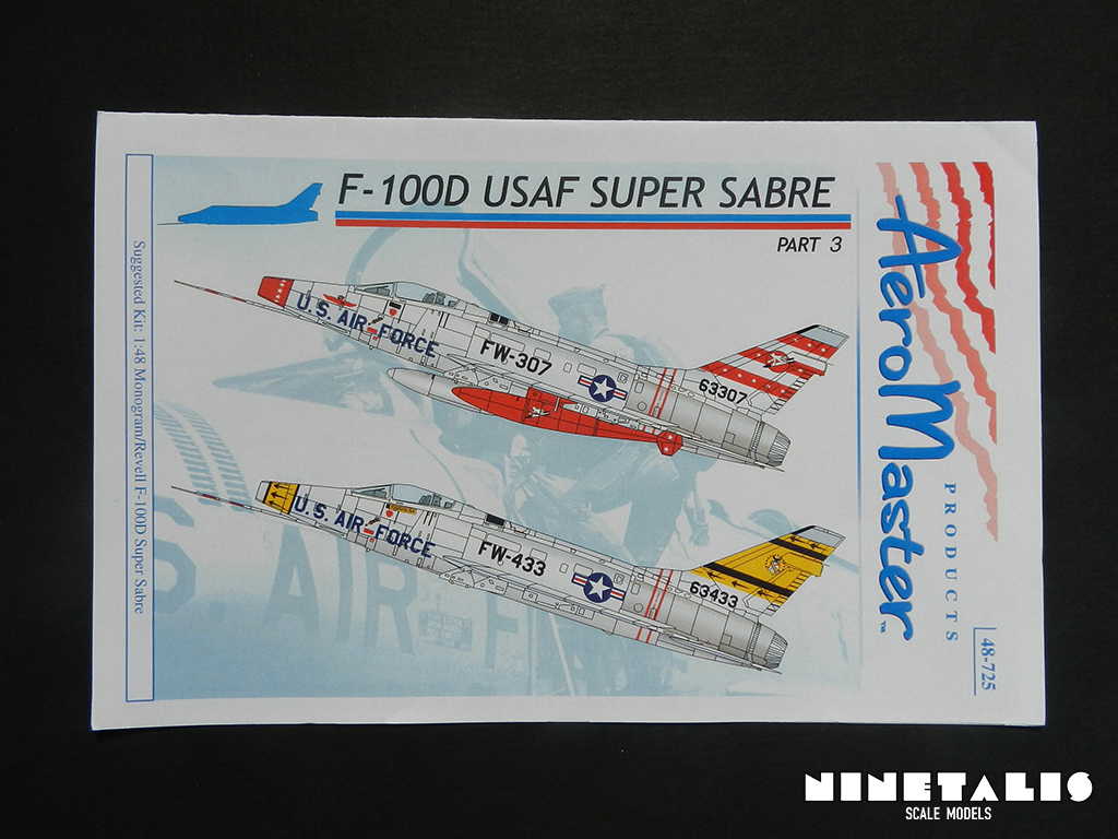 This very decal sheet was released in 2004. It is designed to be used on the earlier Revell/Monogram kit, but personally I’m planning to use this on the recent Trumpeter kit, which was released later in 2010. When that day comes, I will share my work here, although I’m unable to say how soon that will actually happen. As far as I’m aware, there are 9 different F-100D decal sheets out there from AeroMaster, and like the other F-100D decal sheets it gives the user a choice between 2 different subjects: