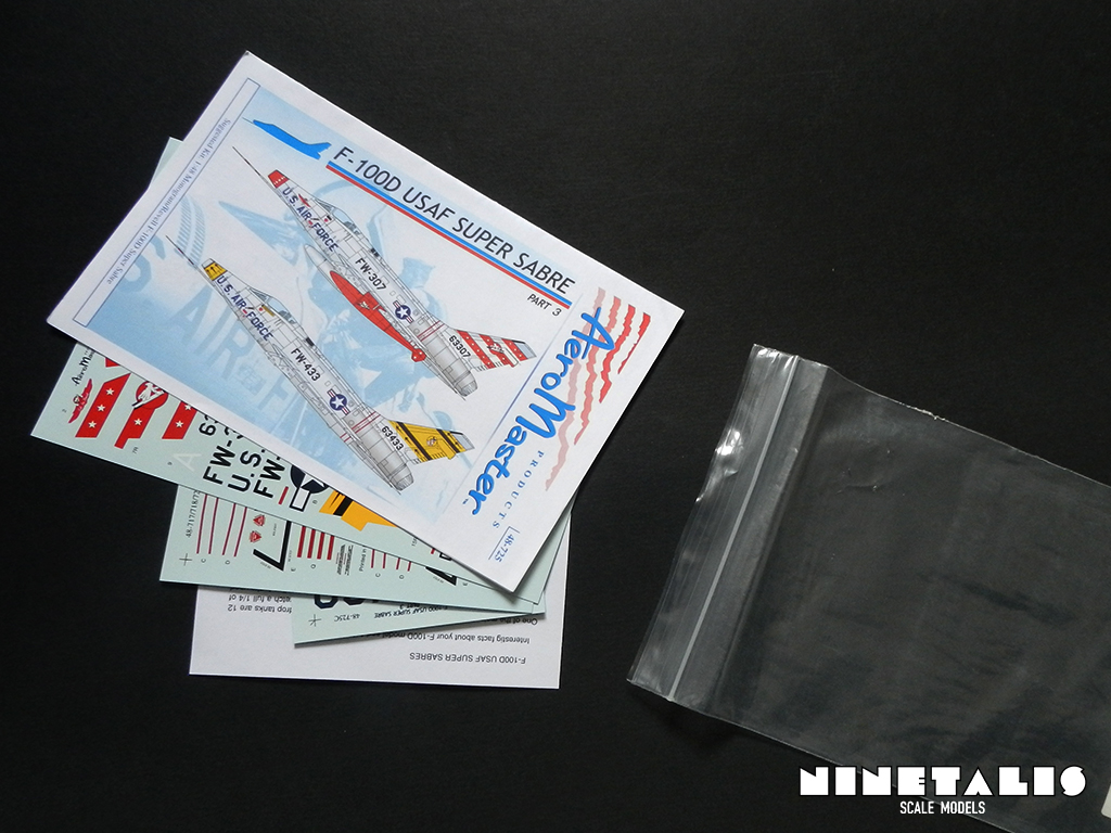 I’m very happy with these decals. I think they will go fine with my Trumpeter kit, even if these are really designed to be used with the Revell/Monogram Super Sabre. AeroMaster has provided two quite interesting markings with a good amount of history, although much of it isn’t added with the information sheet. But Judging from photographic material that I could find, it seems that they actually did a good job on getting the paint schemes right, which is of course the most important part aside from usage capability. Since I haven’t used any of these so far, I can’t really say how well they will go onto the model or if they will crumble upon use, but since the most important sheet (containing the markings of the squadron) is printed by Cartograf, I can’t really imagine this happening.